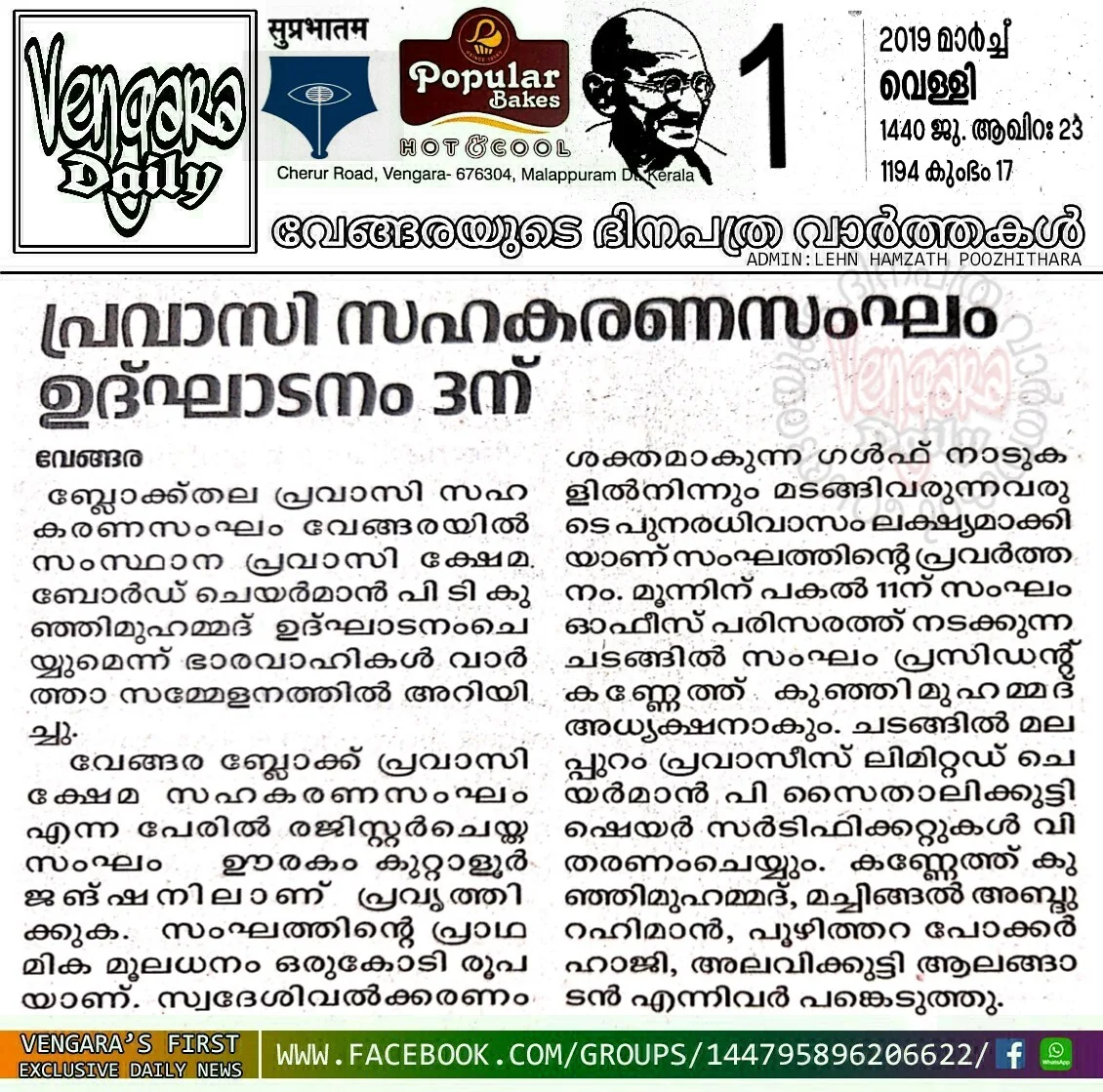 വേങ്ങരയിൽനിന്നുള്ള ഇന്നത്തെ പത്ര വാർത്തകൾ