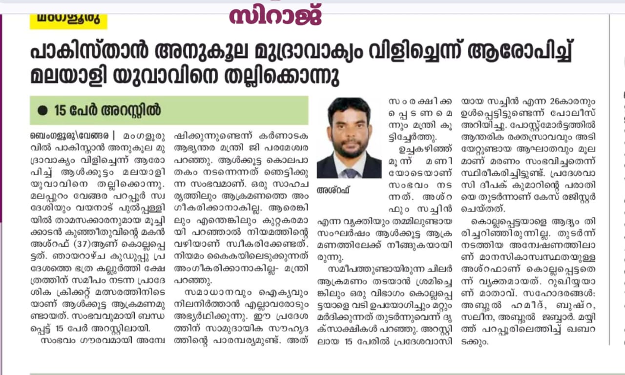 ◾ സംഘര്ഷമുണ്ടായ ഉത്തര്പ്രദേശ് സംഭലില് ഐക്യവും സമാധാനവും നിലനിര്ത്തണമെന്ന് സുപ്രീം കോടതി. ഇക്കാര്യം സുപ്രീം കോടതി സൂക്ഷ്മമായി നിരീക്ഷിക്കുന്നുണ്ടെന്നും ചീഫ് ജസ്റ്റിസ് സഞ്ജീവ് ഖന്ന പറ?ഞ്ഞു. ഷാഹി ജമാ മസ്ജിദ് പരിസരത്തെ കിണറിന്റെ കാര്യത്തില് തല്സ്ഥിതി തുടരണമെന്നും കോടതി നിര്ദേശിച്ചു.